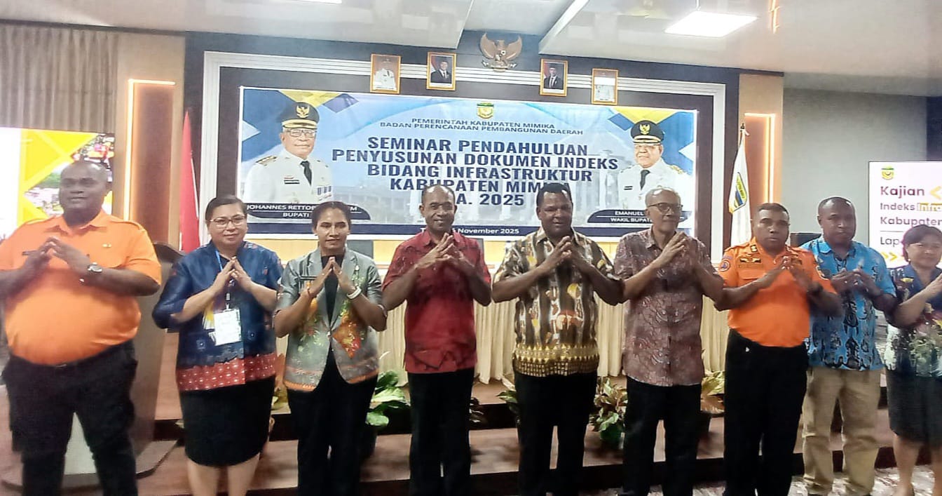 TIMIKA, TelukPapua.com – Pemerintah Kabupaten (Pemkab) Mimika melalui Badan Perencanaan Pembangunan Daerah (Beppeda) menggelar Seminar Pendahuluan Penyusunan Dokumen Indeks Bidang Infrastruktur Kabupaten Mimika Tahun Anggaran 2025 di ruang lantai 1 Kantor Bappeda, Kamis (6/11).