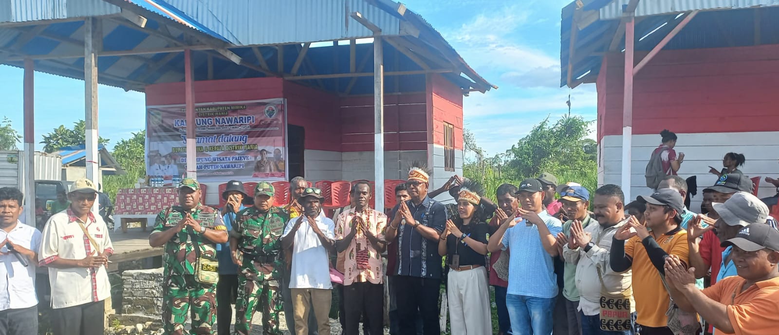 TIMIKA, TelukPapua.com – Bupati Mimika, Johannes Rettob meresmikan empat unit rumah di Desa Wisata Paieve Merah Putih Nawaripi, Jumat (3/10). Bantuan 4 unit rumah huni siap bagi warga ini merupakan bantuan dari dana desa Pemerintah Kampung (Pemkam) Nawarapi, Distrik Wania Kabupaten Mimika.