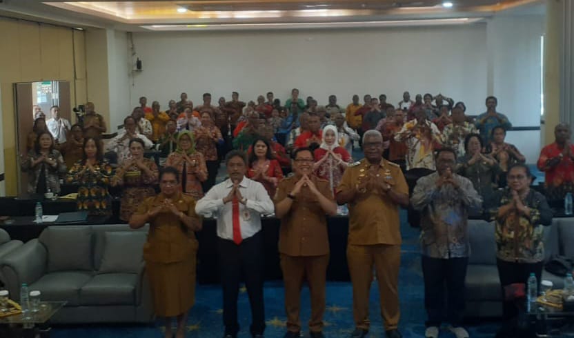 Bupati Mimika, Johanes Rettob S.Sos.M.M., foto bersama Ketua Pansel beserta jajaran dan peserta tes JPT, Selasa 30 September 2025. Foto:Brayen/TelukPapua.Com