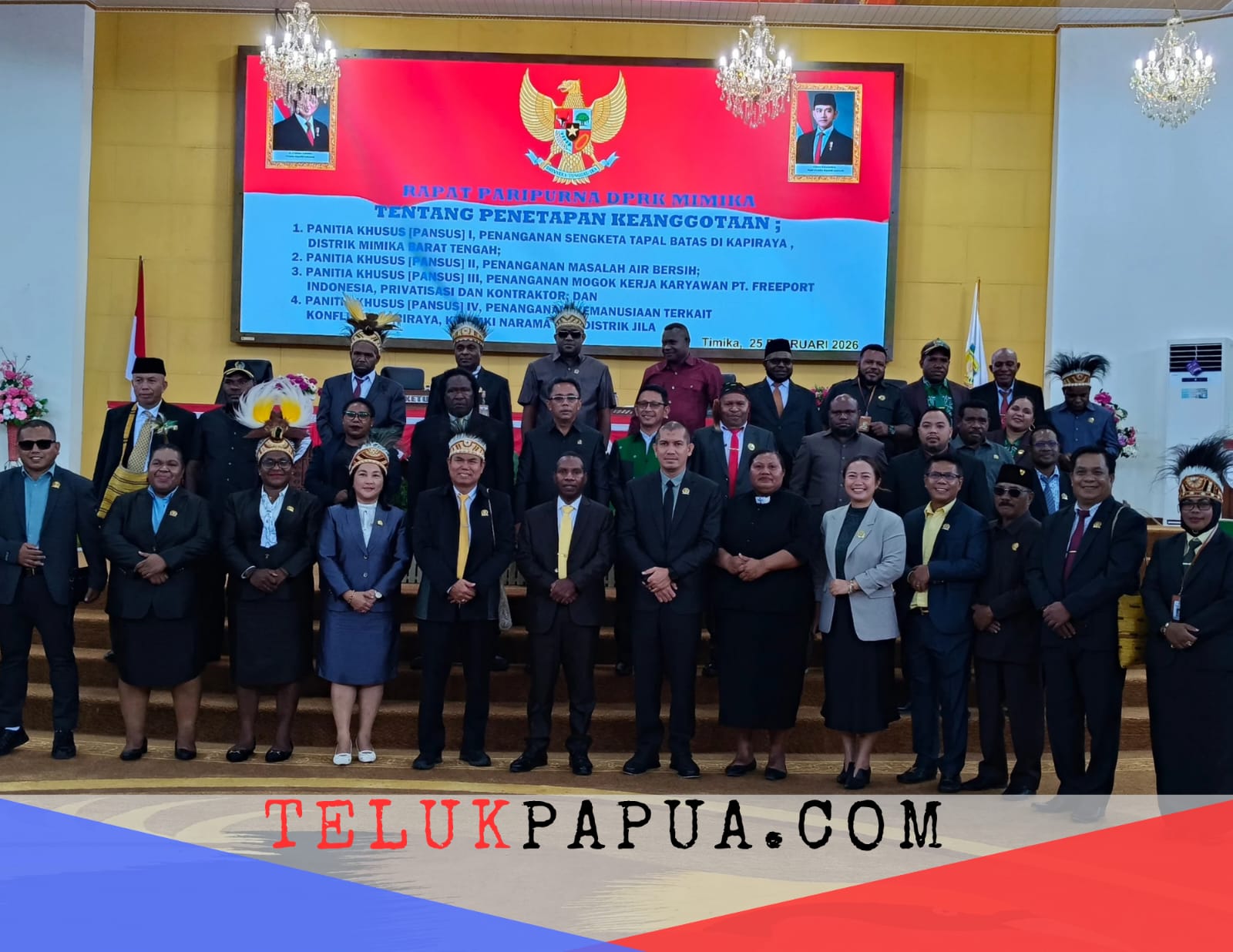 TIMIKA, TelukPapua.com – Empat Panitia Khusus (Pansus) Dewan Perwakilan Rakyat Kabupaten (DPRK) Mimika ditetapkan dalam sidang Paripurna yang digelar di Kantor DPRK Mimika, Rabu 25 Februari 2026. Selain penetapan empat Pansus, dalam Sidang Paripurna yang dimulai pukul 10.28 WIT tersebut juga dibacakan Surat Keputusan (SK) tentang Keanggotaan Pansus.