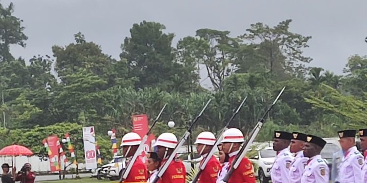 Anggota Paskibraka Kabupaten Mimika Tahun 2025 saat bertugas pada Upacara HUT ke-80 RI di Timika, Minggu 17 Agustus 20025. Foto: Briyan/TelukPapua.com