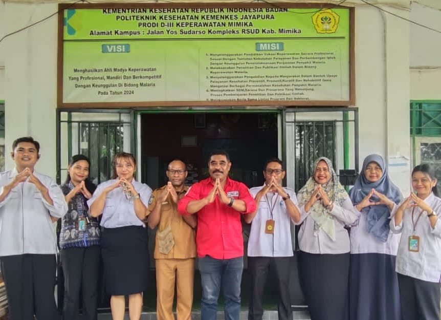 Jaconis Manusiwa, selaku Ketua Harian Palang Merah Indonesia (PMI) Kabupaten Mimika foto bersama usai melakukan koordinasi pembentukan kembali KSR di Kampus Poltekes Jayapura Cabang Timika. Foto; John/TelukPapua.com